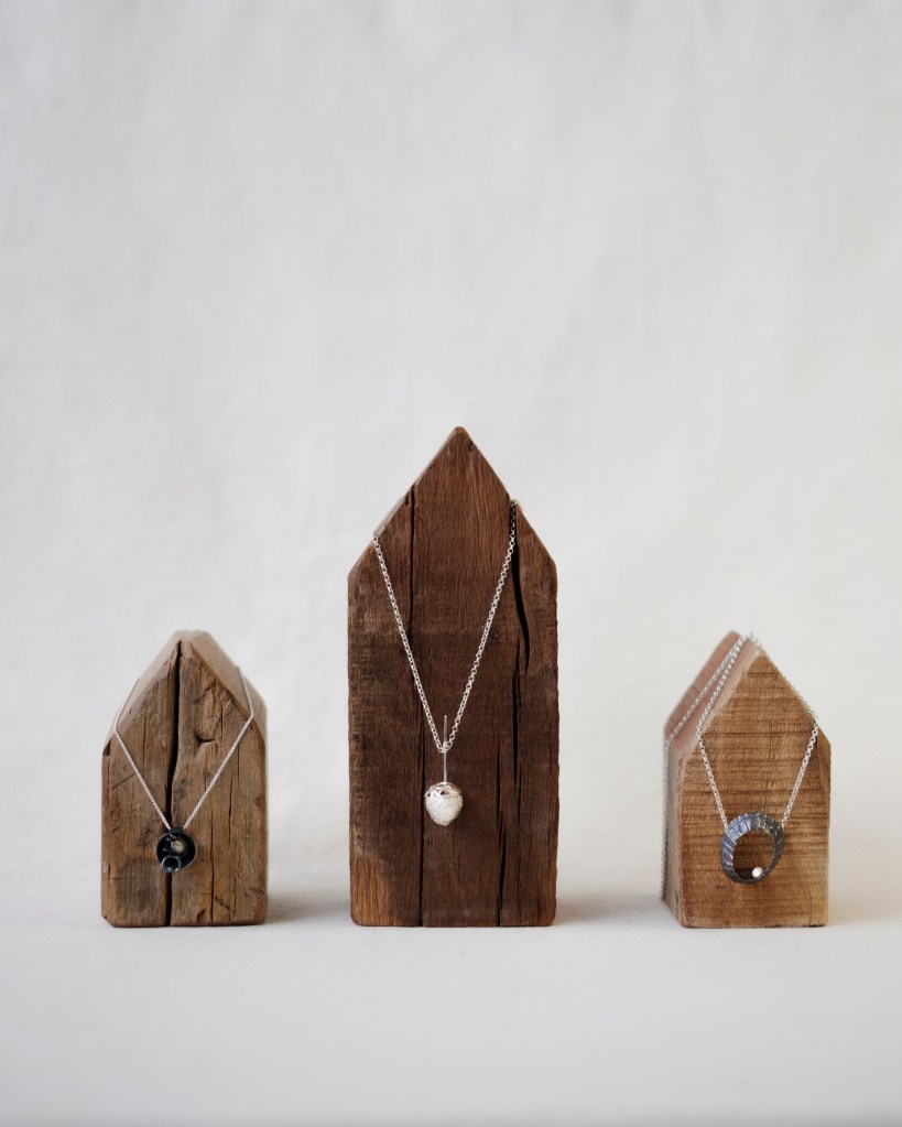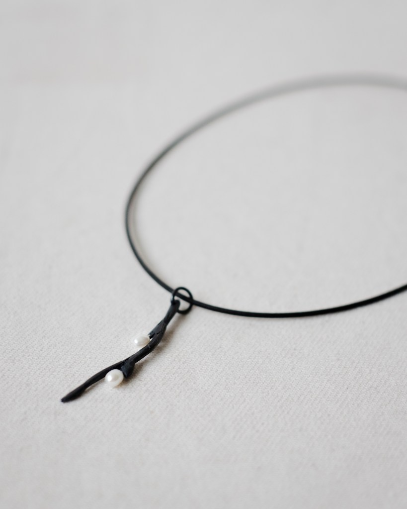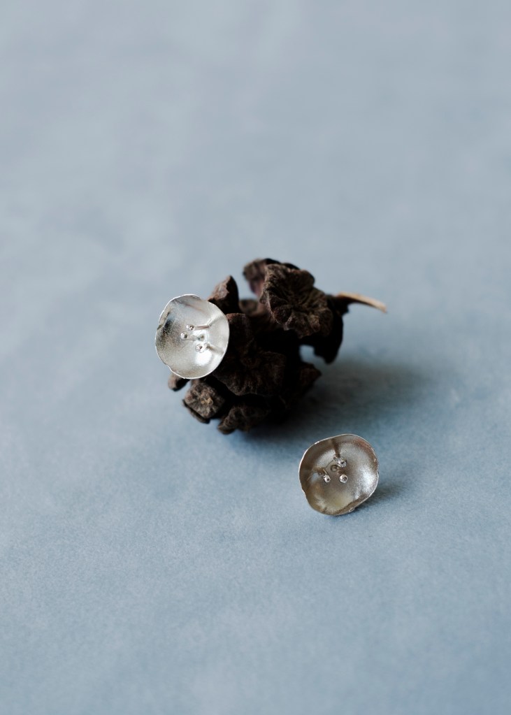 Observatrice attentive des textures et de la complexité des structures du monde végétal et floral, je suis interpellée par les petits trésors d’élégance que cet univers offre au regard. Ces « éclats de nature » qui attirent mon attention deviennent matière féconde à l’inspiration. Glanées ici et là, branches, brindilles, coquillages, corolles de fleurs, sont ainsi accumulées, entassées pour mieux les considérer. Certaines trouvailles sont ensuite coulées en argent et, au gré de l’inspiration, intégrées à des formes simples comme pour en magnifier leur nature.